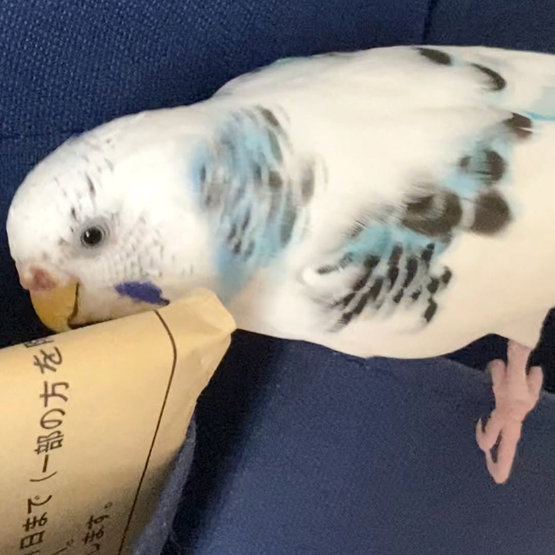 やんちゃ炸裂!封筒をかじるセキセイインコのそらちゃん