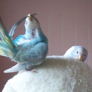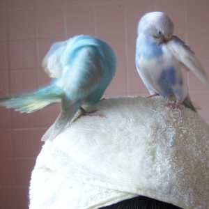 風呂上り、タオルを巻いた頭上に乗ってます☆ 例外にもれず、ここでも伸び伸びと好き勝手やってます。 ホラホラ、降りなさ~い!!